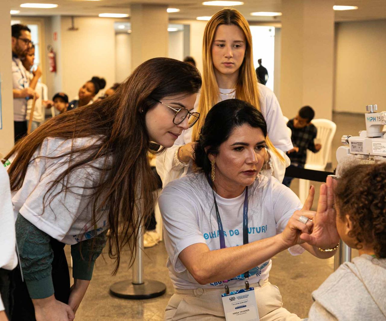 A manhã desta sexta-feira começou com uma importante ação social realizada durante o XII Congresso Nacional da Sociedade Brasileira de Oftalmologia. A iniciativa é fruto de uma parceria da SBO, da Secretaria de Saúde do Município de Belo Horizonte, da EssilorLuxottica e do Instituto Ver e Viver (braço social da empresa que apoia o evento).
