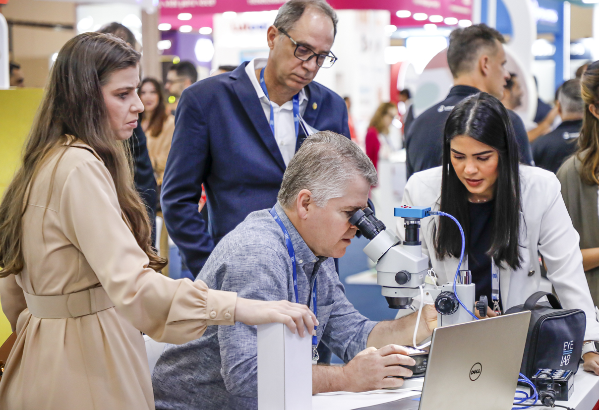 A Eye Lab, do oftalmologista Fabiano Brandão, também esteve no stand da Latinofarma. O simulador criado por Brandão, que permite treinar diferentes técnicas cirúrgicas, como catarata, transplante e vitrectomia, também surgiu da necessidade dele de treinar a habilidade fina para as cirurgias. “Há 18 anos, a ideia surgiu a partir da cartela de medicamento. Estava no metrô e tirei um comprimido da cartela e percebi que parecia uma córnea e o medicamento, uma catarata. Cheguei em casa e comecei a treinar e fui evoluindo até achegar ao simulador”, diz Brandão. “Esse tipo de treinamento é importante para adquirir a destreza necessária para a cirurgia e para que quando for operar o paciente já esteja com o nível de treinamento suficiente para fazê-lo com segurança”.
