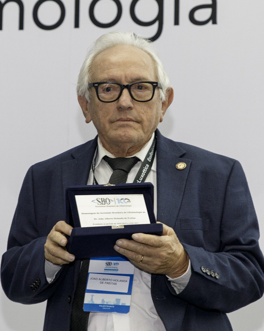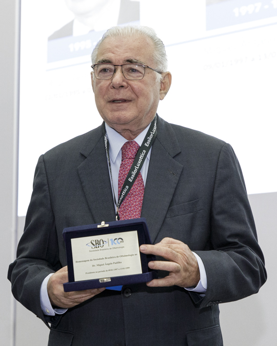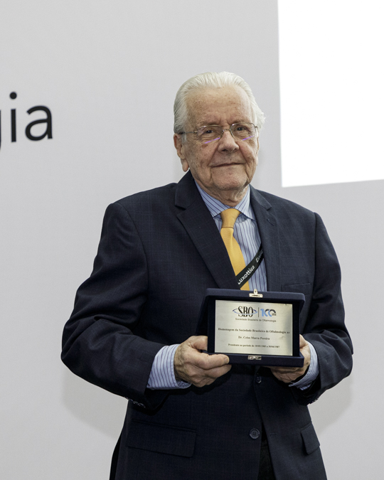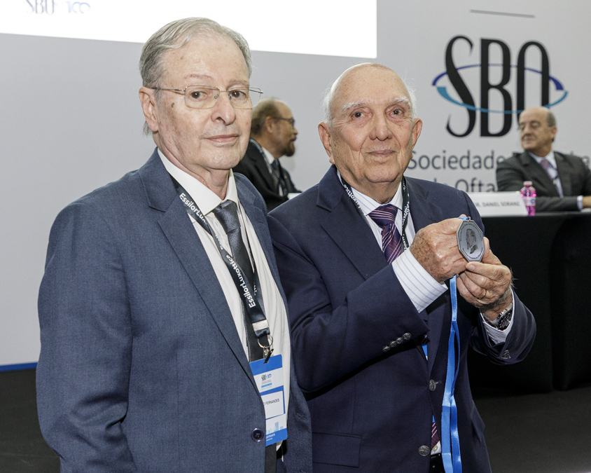 Na cerimônia foram entregues placas comemorativas aos 12 ex-presidentes presentes na premiação e também a João Diniz, diretor executivo que fez parte da sociedade por 66 anos. Também foram entregues as medalhas Abreu Fialho, destinada aos profissionais que contribuíram para a elevação da oftalmologia brasileira. Foram homenageados Eduardo Jorge Carneiro Soares, da Universidade Federal de Minhas Gerais; Liana Ventura, da Fundação Altino Ventura; e Carlos Henrique Bessa (in-memorian), ex-presidente do SBO que muito contribuiu par ao incremento da oftalmologia no país.