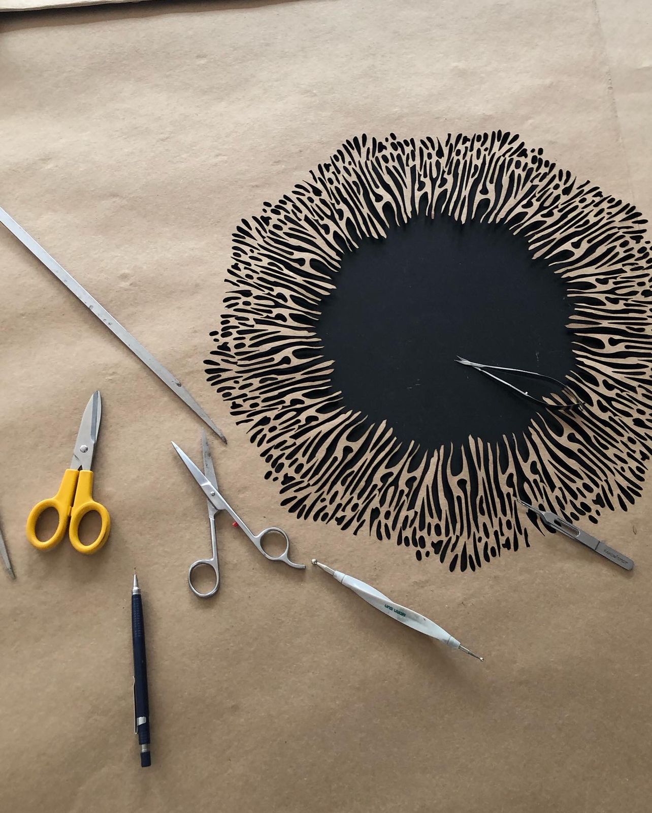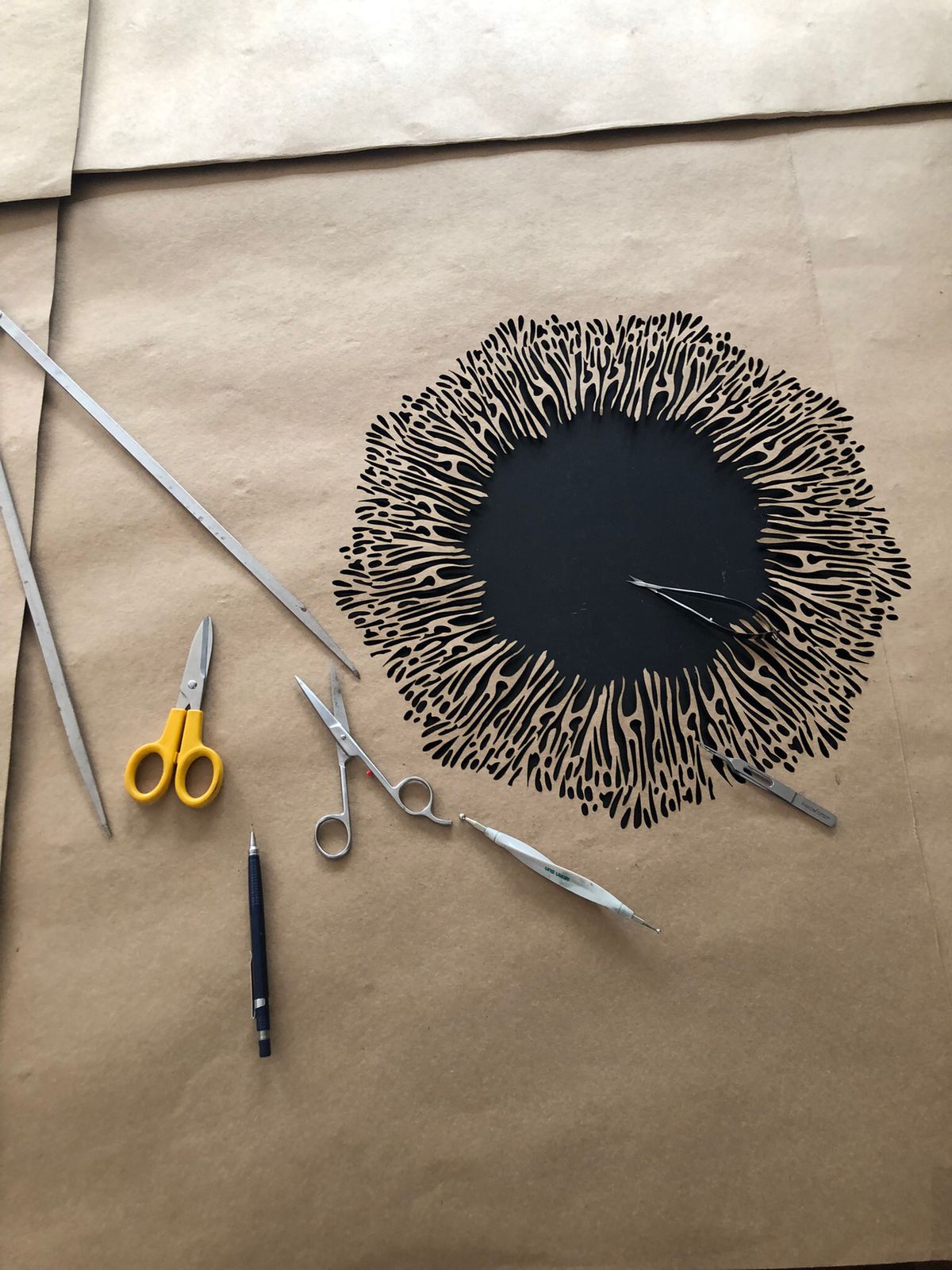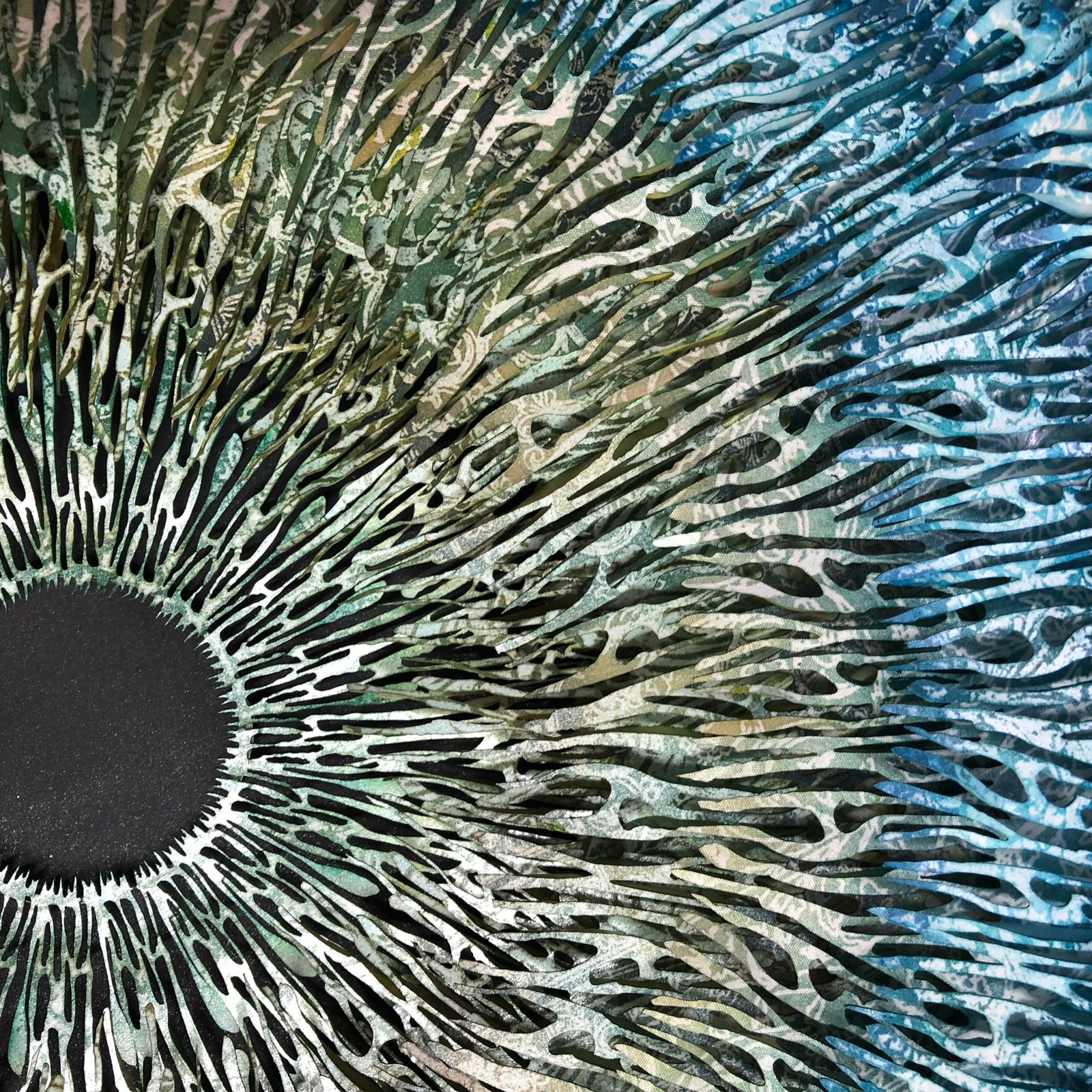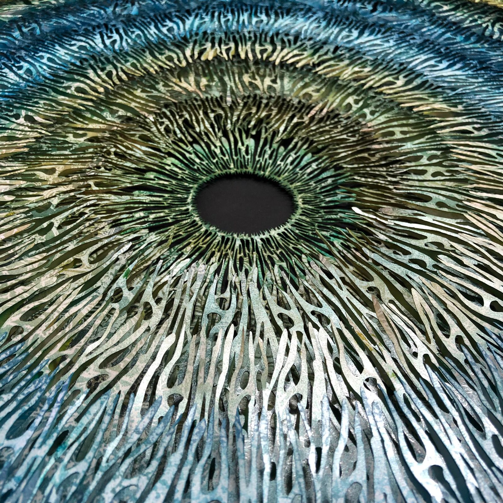 Anna Jankov: Há dez anos, participo das Expedições da Oftalmologia Humanitária na região Amazônica. Foi em uma das primeiras expedições que, ao assistir uma cirurgia de catarata, surgiu a ideia de representar a íris humana. Para isso, criei uma técnica de sobreposição 3D, que recebeu o nome de arte projetada. Uma escultura em que o olho humano é recriado a partir de recortes sinuosos, criando a ilusão de uma viagem por dentro da íris humana. Com base nessa mesma técnica tenho desenvolvido outros temas, normalmente sempre ligados à medicina.