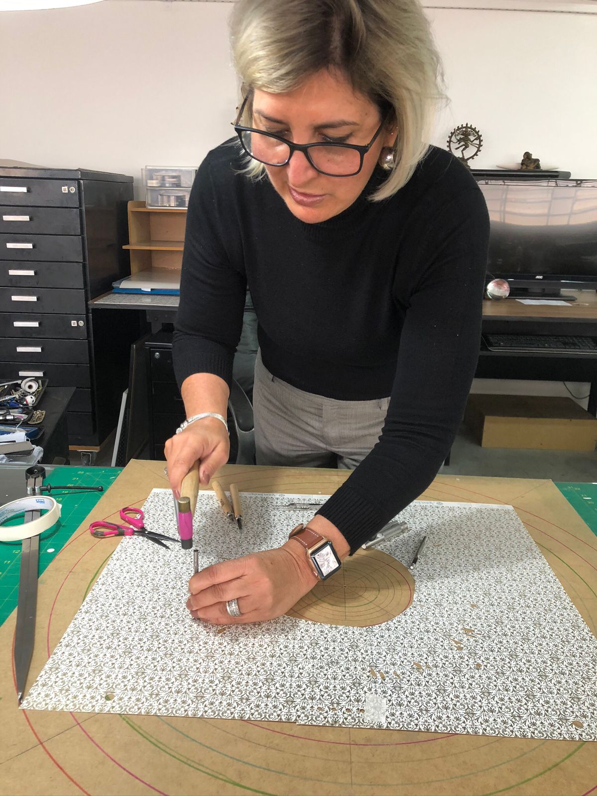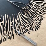 Anna: Essa técnica consiste em estruturar as lâminas de papel, de forma que elas pareçam suspensas. Todo o princípio é desenhado à mão e as tintas são aplicadas por meio de aerógrafos manuais.